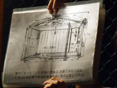 また、長野俊英高校郷土研究班の生徒たちの解説も、事実を淡々と解説するもので、非常によかったと思う。失礼極まりないことだが、壕の中で高校の生徒がボランティア的に解説してくれると聞いたとき、わたしは、「もしかしてアカ教師に吹き込まれたことをそのまま感情的に伝える反戦高校生じゃないだろうな」などと思ってしまったのだった。だが、それはまったくの見当外れで、生徒たちも自分で見て、いろいろな人たちに話を聞いて、その上で自分の考えをまとめようとしていた。