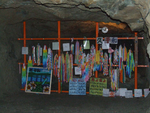 土屋先生は、この地下壕を「朝鮮人に対する加害遺跡」だとか「強制連行されてきた朝鮮人を死に至らしめた場所」とみなすことには賛同していないようだ。突き当たり右手には千羽鶴などが飾られているが、これについてもあまりよく思っていない風だった。