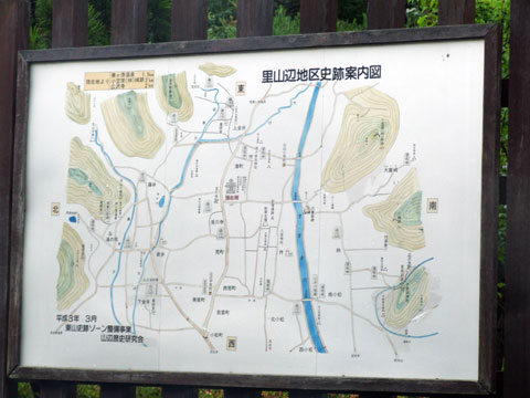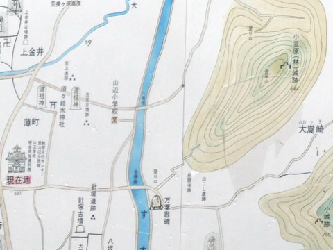 実はこの写真は帰り道、山辺学校歴史民俗資料館の前を通り過ぎたときに、タクシーの窓から撮ったもの。地図では東が上。右上、すすき川沿いに金華山がある。