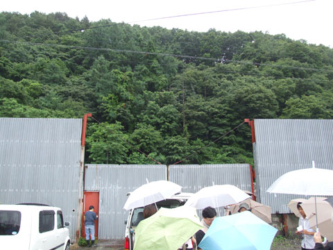 朝9時に松本駅に移動。そこから一同、タクシーに分乗して現地へ向かう。小雨が降ってきた。