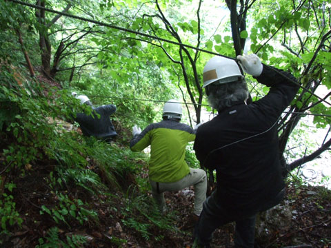 今回は松本第一高等学校の平川豊志先生(松本強制労働調査団)の案内である。ここは私有地なので、見学には事前に連絡が必要だ。地元で研究している人の案内が必要不可欠である。