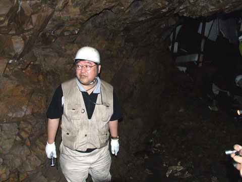 ここで平川先生の指示があって、全員懐中電灯を消す。坑内には一切の明かりがない。完全な暗闇。静寂。しばらく、この沈黙を味わう。