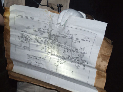 地下工場の間取り図。地図でいうと下の入り口から入って、奥へ進み、中央の長い坑道を左へ、それから右へと歩いた。