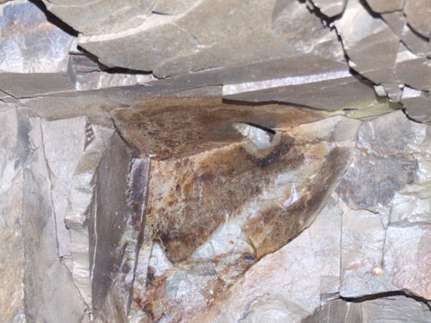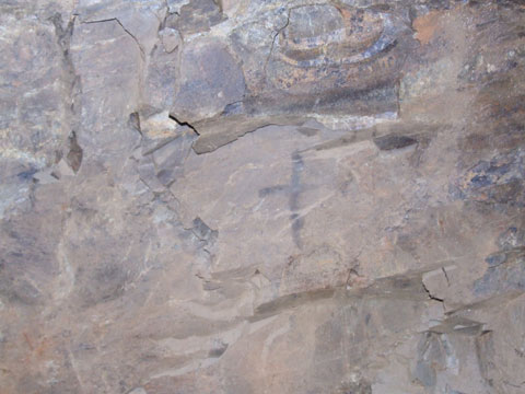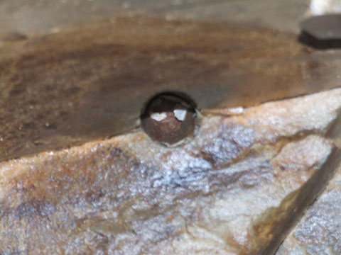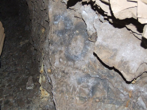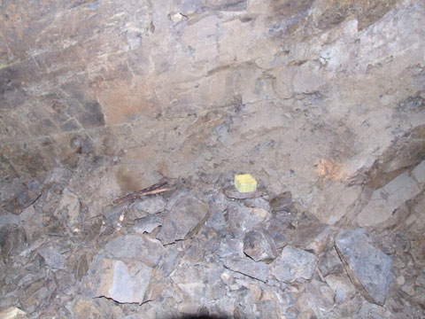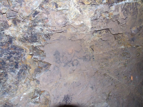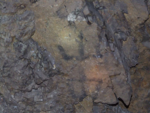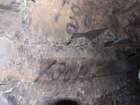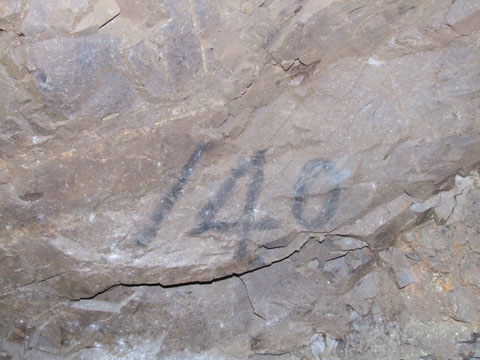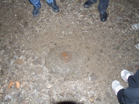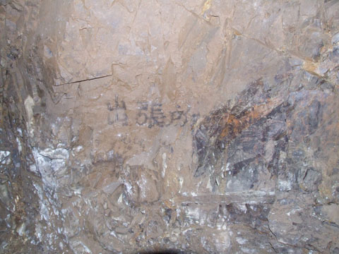 「十」の下に積み上げられた石。これは某宗教団体の人たちが来たときに積み上げたものだという。おそらく、「十」は十字架で、坑内にいたクリスチャン朝鮮人労働者がここで祈っていたに違いないという考えに基づいて、礼拝しようとしたものだと思われる。