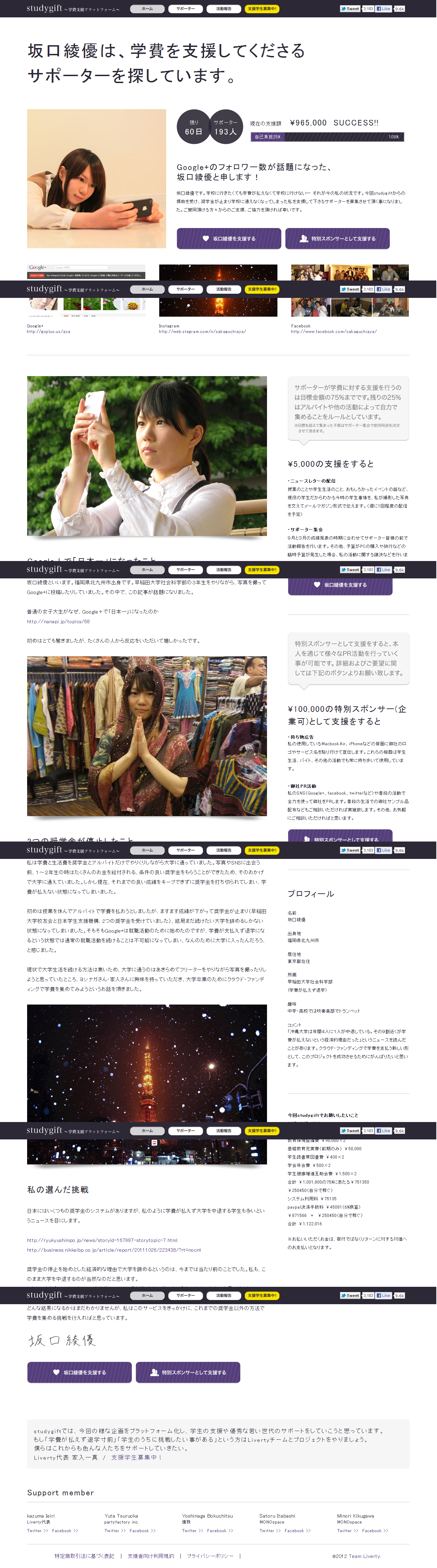 そんな体験をしたのだから、studygiftには期待を寄せていた。同じような苦しみの中で学業を続けたい学生は、少しでも支えたい。