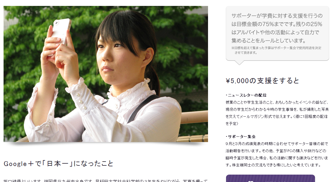 わたし自身が大学生のときには極貧生活を送り、結局その結果として中退に至ったという経緯もあり、決して他人事ではなかった。家入さんがそういう学費支援システムを作りたいと表明したときにはわたしもfacebook経由で大賛成の意を伝えた。だが、その結果は非常に残念なものとなってしまった。できる範囲で最大限に協力したいと思っていたわたしが、実際のサイトを見て寄付をしなかったのだ。
